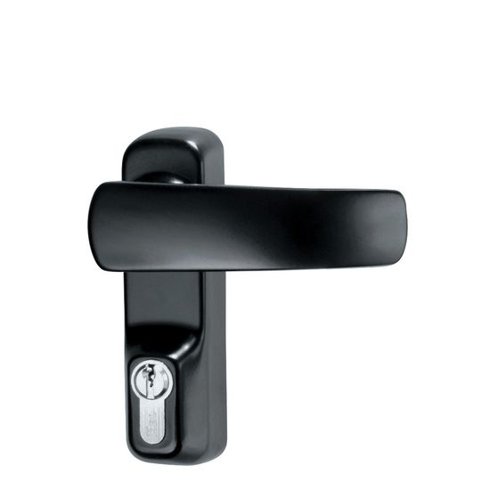 Iseo lever handle for use on the external side of doors installed with Iseo panic exit devices. Supplied with 5 pin euro profile cylinder.